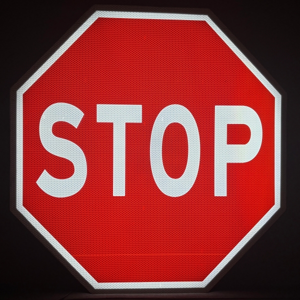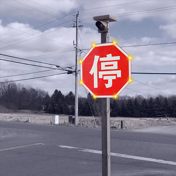 The active illuminated STOP sign has the characteristics of low power, high brightness and low energy consumption. It is suitable for solar power supply. It is also equipped with a voltage conversion power supply and can be directly connected to the power grid. When the ambient illumination is lower than 100 lux, it automatically turns on the glowing state.