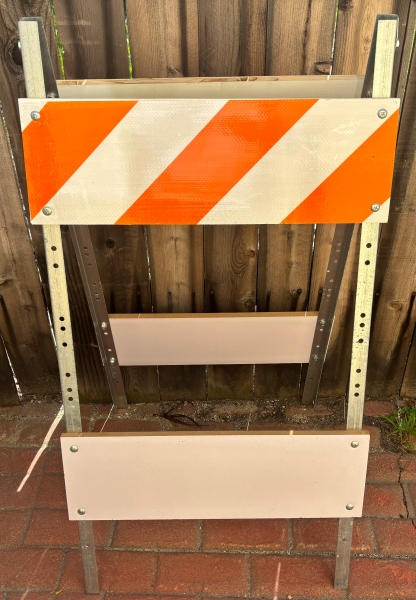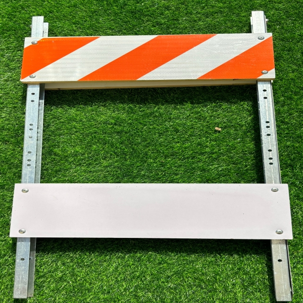 Road construction or traffic control requires the use of barriers. The double-sided reflective barrier consists of 4 metal brackets forming an A-shape, riveted with 2 solid wood boards and 2 synthetic boards. The solid wood boards are pasted with engineered grade microprismatic reflective film, which is clearly visible from 330 feet away both day and night.