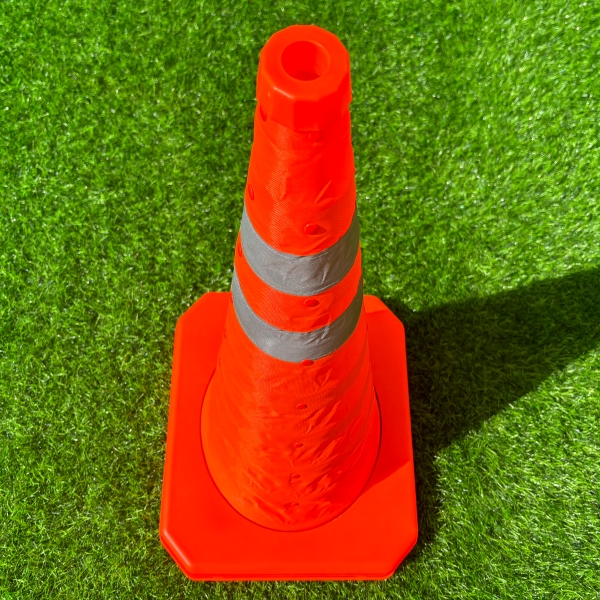 Orange-red non-woven fabric, high-brightness reflective fabric sewn cone body, ABS material base, TPU material elastic support structure. Suitable for emergency management of traffic accidents, construction work areas, and temporary road traffic use.