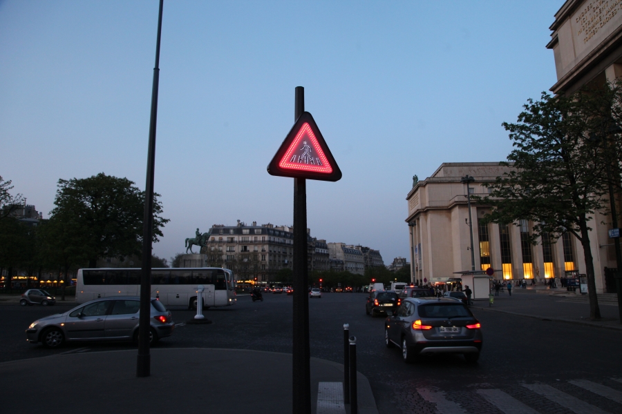 I-ROAD Technology has independently developed an optical Fresnel lens to improve the brightness and angle of LED light-emitting diodes, making them more suitable for all types of road users to see luminous signs. LEDs are densely arranged on the surface of traffic signs to form regular text, graphics, and symbols, enhancing the brightness contrast between different colors and achieving an almost perfect visual experience and effect. It has low energy consumption, high brightness, and a lifespan of over 7 years. Even when the power is off, it remains a traditional retroreflective sign because its surface is coated with a reflective film.