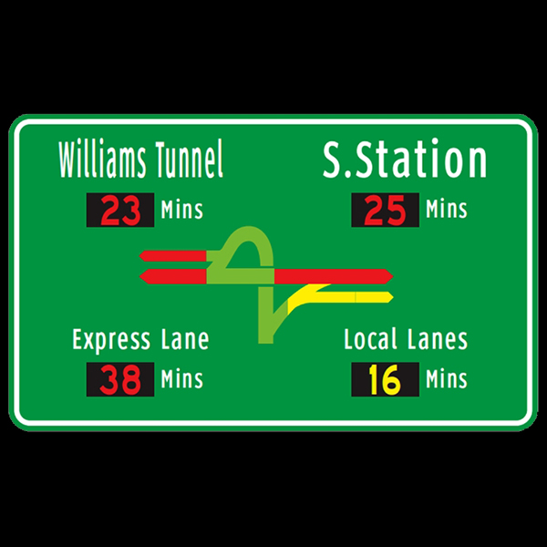 I-ROAD Technology develops and manufactures. Green represents smooth traffic flow, yellow represents slow traffic, and red represents congestion. Synchronize with internet navigation platforms to publish the precise arrival time at the upcoming location in real-time.